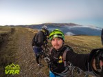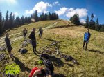 Ma intorc rapid la coechipieri si nici sa mananc nu mai imi vine caci deja soarele era aproape apus si noi aveam o hatamai coborarea de dat. Ne urcam repede pe bicle si ii dam rapid la vale pe culmea Vacarea pe marcaj dunga rosie. Marcajul la urcare a fost triunghi rosu.