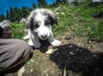 O luam spre varf dar destinatia noastra finala este Varful Buila de unde vrem sa coboram spre schit. In apropiere de refugiu se afla si o stana, care la vremea asta era parasita. Totusi, dam de 2 pufoseii de caini ciobanesti si de mama lor, lasati parca sa pazeasca stana. Prima data ne-am speriat de latratul lor dar dupa ce am vazut ca sunt doar niste pui de cateva luni ne-am linistit. A fost de ajuns sa le dam cativa biscuiti ca nu am mai scapat de ei si ne-au urmari pana pe “varf”.