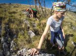 Acest varf Buila nu este tocmai un varf cum va imaginati, marcat, ci mai mult o denivelare care nu este nici pe departe cel mai inalt din zona. Da, Vanturita este inalt dar noi am vrut pe Buila si nu ne-a ajuns asa ca am mai urcat inca putin spre varful Albu care parea mai inalt. Aici am stat de am infulecat ceva si ne-am jucat cu pufoseniile pana cand a venit timpul sa o luam inapoi. Cu harta pornita pe telefon am incercat sa ne orientam putin in golul alpin si sa identificam valea prin care coboara “traseul”, care din pacate s-a dovedit a fi un nemarcat usor abrupt in ultima portiune pana se intersecteaza cu traseul Punct Galben ce urca tot in curmatura, de la schit pe o poteca ce seamana putin a brana.