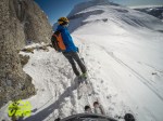 In tot traseul, singura portiune mai dubioasa a fost inainte de ascensiunea finala pe varf, unde, intro vaioaga, din cauza stratului consistet de zapada, poteca nu se mai observa si am ales sa traversam portiunea undeva pe langa stanca. Totusi, pe masura ce calcam, ne afundam destul de mult in zapada care o putea lua oricand la vale asa ca ne-a luat cel putin 30 min ca sa trecem toti o portiune de 10-20 m :), asta cu schiele in spate. Cred ca mergea si pe ele, aveai mai mult grip in acea portiune dar tot dubios ar fi fost.