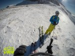 Odata trecuti, mai urcam putin cu ele in spate pana iesim de acolo si apoi le aruncam in picioare si ii dam tare pana pe varf. Sus, aglomeratie ca de obicei pe Ciucas, si un vanticel care iti merge la inima, dar nu intr-un mod placut :))). Deja aici nu mai stiam pe unde coboram, cu schiele in spate, cu ele in picioare, deja eram confuz total. Unii si le puneau in spate, altii in picioare, ma uitam si ma intrebam daca ne spargem cumva in 2 grupuri :))). Dupa ce am  facut poza de grup si am discutat putin am conchis sa coboram pe ele prin vaioaga pe care am urcat. Ne urcam pe ele, mai facem un mic brief la traseul de coborare si ii dam usor, usor. Nu coboram 20 m ca Lucian o ia in stanga pe prima vale si nu pe aia pe care credeam eu ca trebuie sa coboram. Vorbesc de exact prima vale care se lasa de pe varf in partea dreapta cum te uiti spre valea berii. Ma uit la restul care si ei erau putin nedumeriti, mai ales Adrian care spusese clar ca nu vrea sa coboare pe acolo si, in lipsa de alte variante, ma iau dupa Mircea care era urmatorul dupa Lucian. Cu ceva distanta intre noi, coboram cu totii safe si fara regrete pana unde valea se ingusta. Aici ne oprim si discutam variantele. Una ar fi sa urcam la cabana si sa coboram pe valea Berii. Alta ar fi sa balaurim prin valea asta care, dupa cunostintele lui Lucian, ne scoate tot in valea Berii dar nu stim cat de schiabila este. Alegem a 2-a varianta si uite ca incepe boschetareala aia faina care mentine spiritul de aventura pana spre finalul oricarei ture :D. Mergem printr-un culoar ingust si ne dam schiurile jos la 2 mici saritori de 2 metri pana cand ajungem intro zona unde trebuie sa le dam definitiv jos daca vrem sa ajungem cu ele cat de cat intregi. De aici nu mai facem chiar mult pana in vale de unde incepem drumul spre masini. Noroc ca tovarasul lui Lucian al carui nume imi scapa acum, si care nu a urcat pe varf ci a ramas sa se dea din culme pe vreo vale, a venit in intampinarea noastra si a cules restul de soferi pe care i-a dus sa isi recupereze machinutele. Asa ca nu am fost nevoiti sa mergem pana in pas ci pana la sosea unde deja Tibi si Adrian au reusit sa se intoarca cu masinile sa ne recupereze.