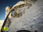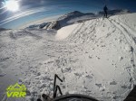 Zapada prin padure arata bestial, si speram la o coborare in genul… odata ce iesi in creasta, se schimba treaba si dai de crusta, gheata si pe alocuri zapada viscolita. Este zapada dar cum am spus viscolita si nu atat cat ar fi putut sa fie. Creasta o parcurgem relativ repede, mai repede decat ma asteptatm, chiar se merge ok, si acum ca niciodata ma impac bine cu claparii care nu mi-au lasat nici o batatura considerabila pana la finalul zilei. Vorbim de un Movement Antidote cu un liner mai ciudat de tip melc si care ma cam jeneaza cand ii strang tare. Dar uite ca in tura asta au fost cel putin ok :D.