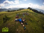 A 2 a zi ne trezim iara de dimineata si o luam de la capat… pus bicicleta pe masina, cules lumea din drum plecat pe DN de data asta cu alta destinatie. Lasam masina in pasul Bratocea si luam cu avant Ciucasul si culmea Bratocea. Planul de data asta este sa facem traseul de la Ciucas Enduro, cel putin ps2 si ps3 ca vrem sa ajungem si devreme acasa. Urcam cu ele in carca pana in culme si incepem sa ii dam rapid pana ajungem la Tigai. Aici odihna de voie, echipare si dat la vale pe unul din cele mai faine trasee incercate pana acum. Traseul chiar este tare si are de toate, pante abrupte, pietre, radacini si cele mai faine singletrackuri. PS2 este ceva mai dificil la inceput cu un pasaj pe bolovani care chiar iti solicita toate skillurile iar ps3 are cele mai faini ST unde ii poti da blana… desi sfatul dupa cazatura de la final ar fi sa fiti putini precauti, macar daca il faceti prima data. Noi nu am aplicat tactica asta si cu 50m inainte de final am reusit sa dam o tranta ca in filme, la vreo peste 40+ km/h conform garminului, si dupa ce un ciot ceva mai ascuns in iarba a muscat putin din cauciucul nostru. Este nasol sa vezi in ultima clipa obstacolul si sa iti dai seama ca nu ai ce face sa il mai eviti decat sa te incordezi si sa astepti deznodamantul :(… Bine ca nu s-a soldat cu nimic grav decat niste denivelari pe tibie si un umar care a inceput sa doara doar a 2-a zi :D. Exceptand faptul ca regret cazatura de la final care putea fi evitata cu putin mai multa precautie, traseul este super tare si sigur vom mai reveni in Ciucas in viitorul apropiat.