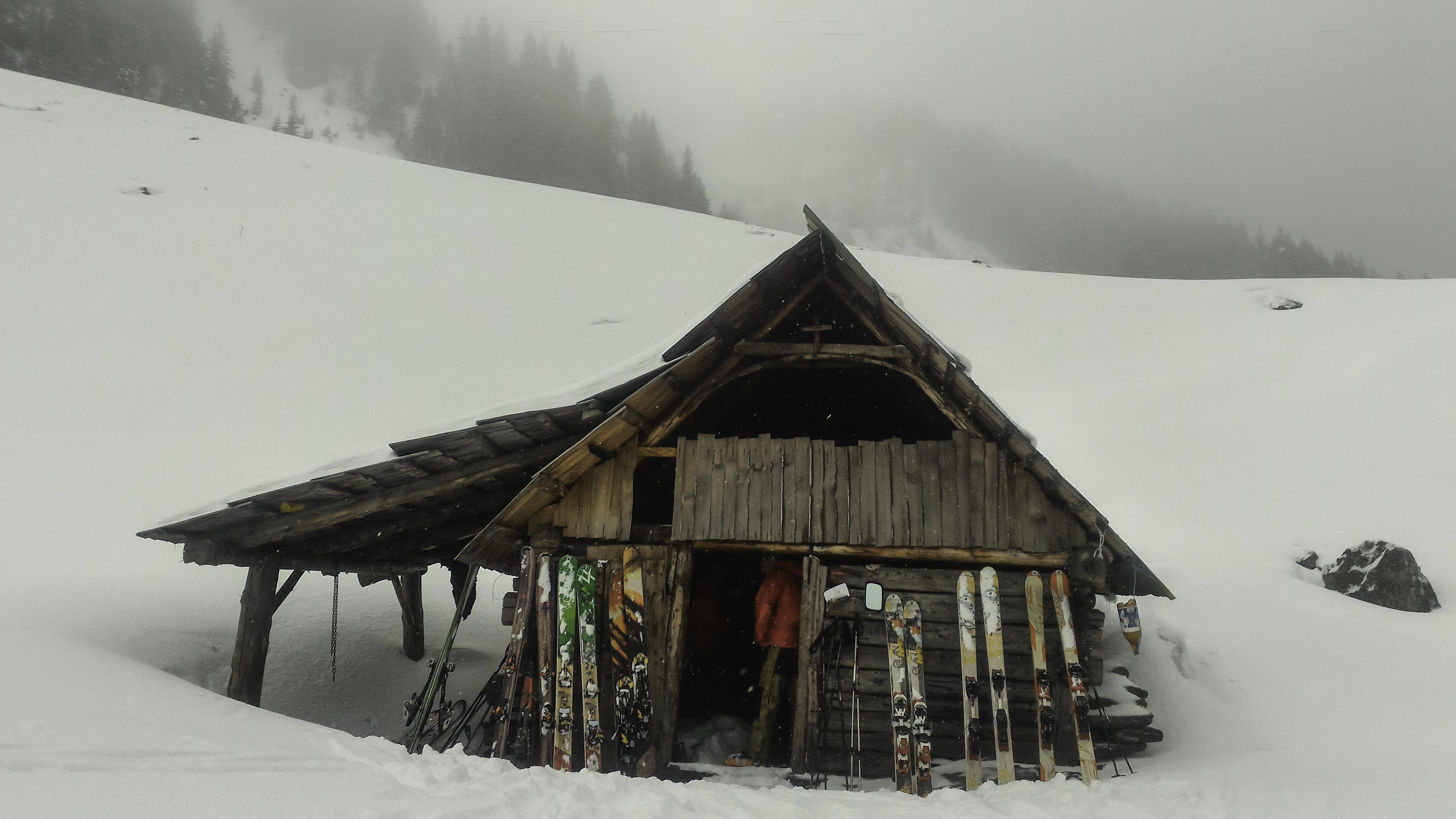 Ajungem iara in apropierea cabanei dar nu e rost sa iesim in platou. Ceata mare si viscolul ceva mai starnit. Am inteles ca grupul din spate, i-a mai dat si ultima coborare dar aveau ghidul cu ei :P.
