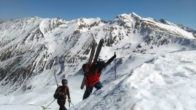 The second day spent at Balea we skin our way up vaiuga , near Vanatoarea lui Buteanu peak, made a descent to Capra lake, skin up again and then chose to go down the south part, in the sun and at a later hour, following a group of austrian skiers that had a guide. I would honestly recomand to avoid this area on clearer days and with temperatures over 5-6C degrees, especially when there is fresh snow accumulations. I found the snow quite heavy…