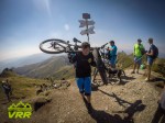 Dupa ce am razbit in culme am inceput sa ne bucuram de singletrackul superb ce te indreapta spre varf. Culmea am parcurs-o repede si nu dupa mult timp aveam varful in departare si cele 2 trasee, unul care duce la cabana si altul pe varf. Se intrevedea un pushbike serios si proviziile noastre de apa constau in cateva guri de fiecare. I-am dat inainte increzatori fiind in fortele noastre si ne-am luptat cu panta prostului pana pe varf doar ca sa ajungem epuizati si cu o sete careia nu aveam ce sa ii facem ca sa o potolim. Pe varf, multa lume, aglomeratie ca la Unirii, unii ne felicitau, altii se uitau la noi si se intrebau ce o fi in capul nostru si ce avem de gand sa facem cu bicicletele pe aici… pai cum adica, sa coboram pe ele :D.